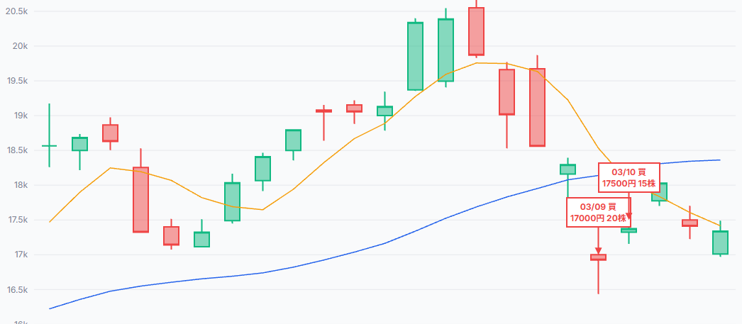 今週は、強気で波に乗る銘柄と、じっと耐える銘柄の2つを買い向かいました。